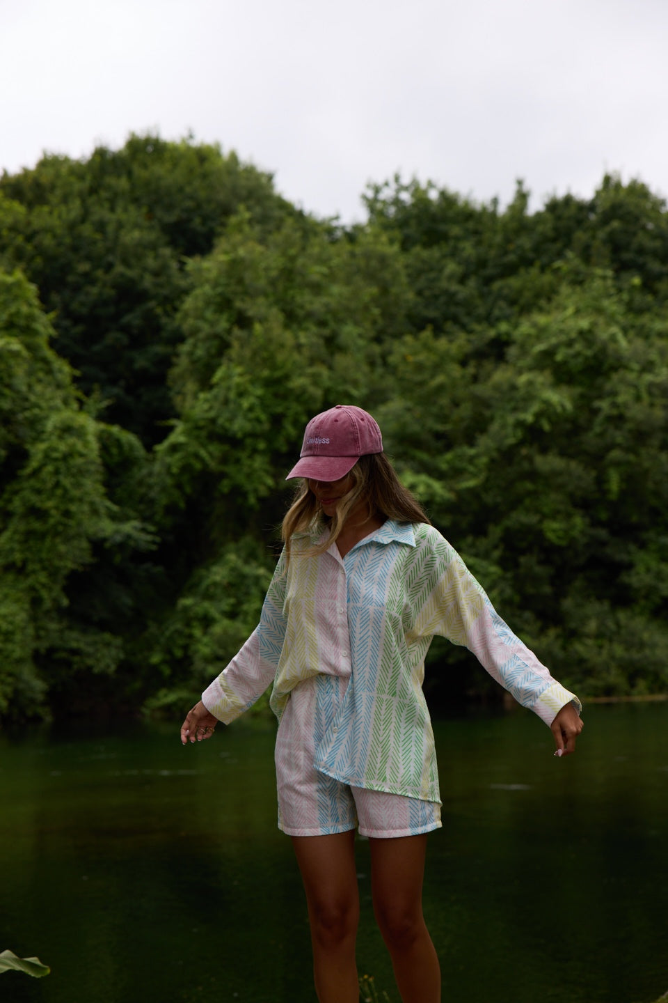 Chapéu ajustável com fecho metálico.